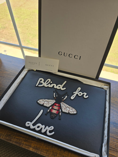 Authentic Gucci Bee Black 'Blind for Love' Clutch- Full Inclusion